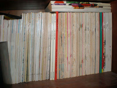 A destra del solitario titolo di Hergé (fra poco avremo modo di parlare ampiamente di Tintin & soci) c’è parte della collezione completa di Sgt. Kirk, una rivista dalla vita travagliata, ma di grande importanza per la rivalutazione del Fumetto in Italia e il suo “sdoganamento” culturale:
